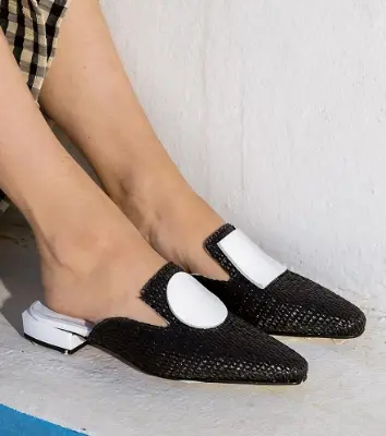 Πλεκτό top Scotch & Soda, τζιν παντελόνι Calvin Klein και mules Jeffrey Campbell, όλα Favela, favela.gr